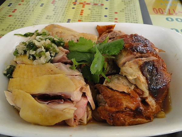 左邊的玫瑰油雞跟右邊的烤鴨