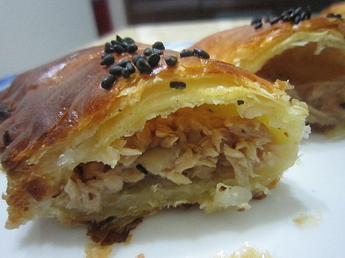 切開來看看鮪魚餡.派皮超級酥的.黑芝麻烤過後也更香.當然裡頭的鮪魚也是超級好吃的