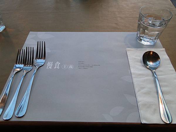 餐墊上的慢食主義也是店家在推的新美食主義